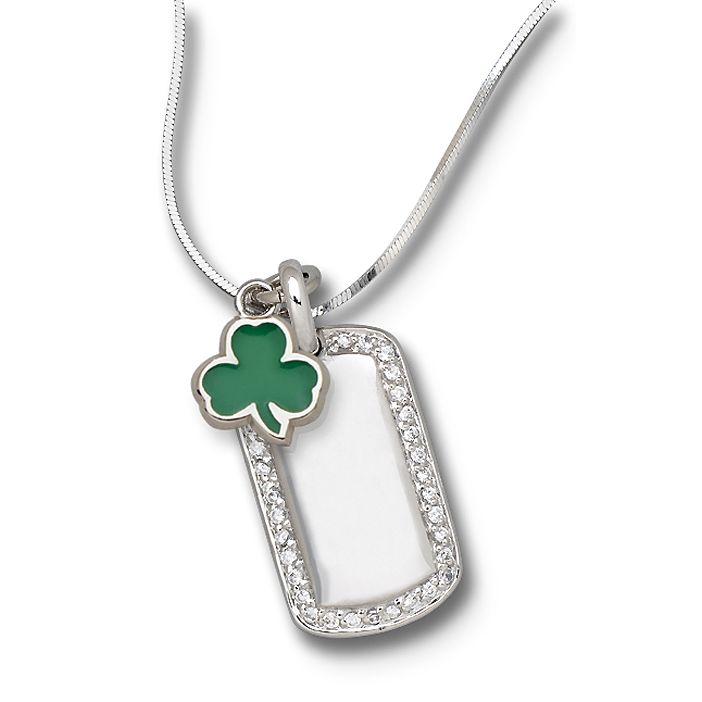 Support the Celtics in Style with This Boston Celtics Enamel Shamrock Necklace. Crafted in Sterling Silver, This Dazzling Boston Celtics Necklace Measure 3 X 15 X 35mm and Is Officially Licensed By the Nba. DonT Get Caught Watching the Game Without This Boston Celtics Enamel Shamrock Necklace in Sterling Silver. Processing Time: 10 days. BRAND : NBA OFFICIALLY LICENSED CHAIN TYPE : SNAKE CLASP TYPE : SPRING RING GEM TYPE : CUBIC ZIRCONIA Gem Type - 2 : ENAMEL METAL STAMP : 0.7 METAL TYPE : STERLING SILVER METAL UNIT OF MEASURE : GRAMS SIZE : 18 STONE CLARITY : I1 STONE COLOR : WHITE STONE COLOR - 3 : WHITE STONE CUT : VERY GOOD CUT STONE SHAPE : ROUND SHAPE STONE WEIGHT : 0.5 STONE WEIGHT : 0.50 TOTAL GEM WEIGHT : 0.5 TOTAL GEM WEIGHT : 0.50 TOTAL METAL WEIGHT : 925 STERLING UNIT OF MEASURE (DIMENSIONS) : MM