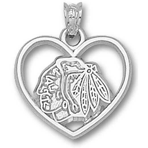 Sterling Silver Chicago Blackhawks Logo Heart Pendant |