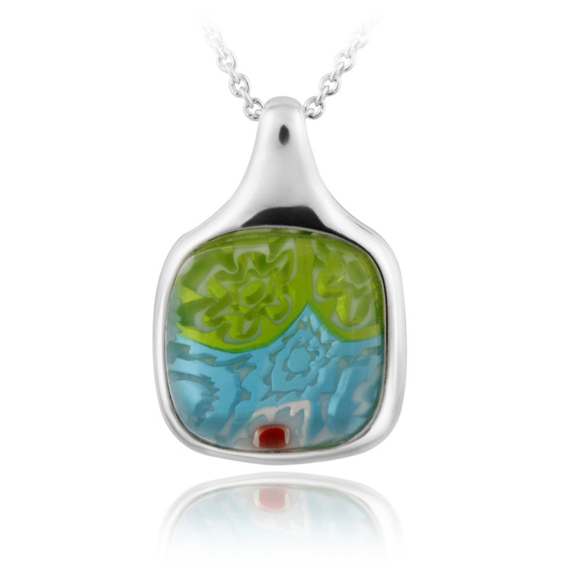 This attractive necklace showcases a multi-color millefoiri glass square pendant. The pendant dangles from an 18-inch rolo chain and is crafted of sterling silver.>