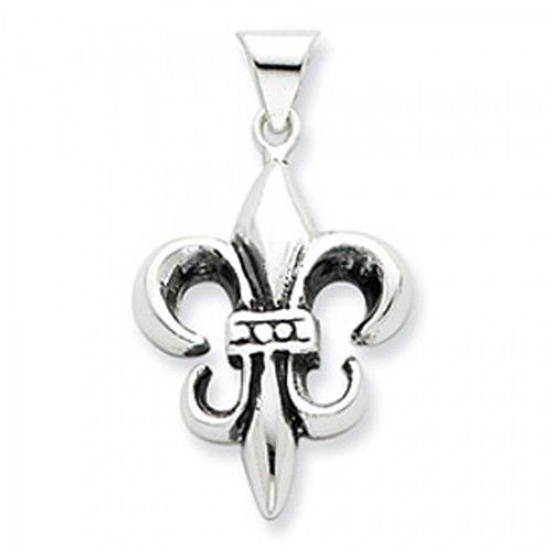 Sterling Silver Polished Finish Dangle Antiqued Fleur De Lis Pendant |