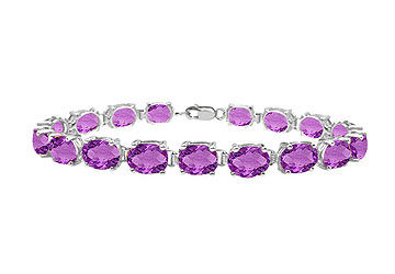 Gorgeous and elegance bracelet surrounded on your wrist with oval faceted cut amethysts in prong-setting. Each stone size consists of 5X7 MM and the bracelet is 7 inches long with a lobster clasp. The entire bracelet is made in rhodium .925 sterling silver and has a total gem weight (TGW) of 15.00 carats.