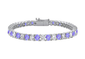 A continuous row of gems signifies your everlasting love. Deep created tanzanites alternate beautifully with white CZs in a .925 sterling silver rhodium prong-setting. With a total gem weight (TGW) of 10.00 carats. This tennis bracelet makes a great way to express your eternal love.