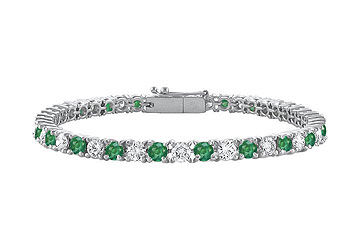 This never ending chain of alternating frosted round emeralds and white CZs symbolizes your timeless love. Crafted in .925 sterling silver rhodium held in a prong setting this tennis bracelet has a total gem weight (TGW) of 4.00 carats. A great way to honor your union.