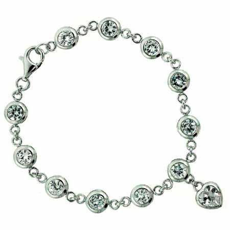 A solitaire simulated Diamond cz Heart dangles attractively from a Luminous Simulated Diamond cz circle link bracelet.>