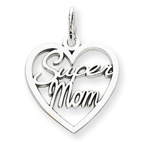Super Mom Heart Charm in 14kt White Gold - Mirror Finish - Compelling - Women