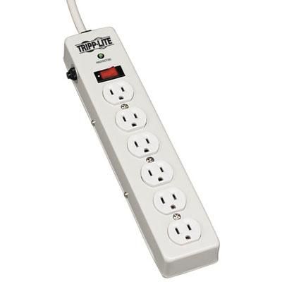 Tripp Lite's TLM606HJ surge suppressor offers complete AC surge suppression for comprehensive protection of personal computers, home stereos, televisions, VCRs, DVD players, power tools and other electrical and electronic equipment. Heavy-duty AC surge suppression shields connected equipment from damage and performance problems due to transient surges. TLM606HJ offers 6 total outlets, a 6 foot power cord and diagnostic LED to warn of suppressor damage. AC surge suppression rated at 1120 joules shields equipment from surges and line noise. Rugged metal housing offers convenient protection of desktop computer equipment and accessories. Lifetime warranty with $75,000 Ultimate Lifetime Insurance (USA & Canada Only). PLUG/OUTLETS: Input - 6 ft. AC line cord with NEMA 5-15P plug/Output - 6 NEMA 5-15R outlets ELECTRICAL: 120V AC, 50/60Hz, 15A (Requires NEMA 5-15R wall receptacle) FORMAT: Metal strip SUPPRESSION: AC: 150V RMS Clamping/1120 joules/330V UL1449 6 outlets 6 ft. cord Surge suppression rating: 1120 joules EMI/RFI noise filtering 15 amp resettable circuit breaker protects against overload Diagnostic LED confirms suppressor "protection present" (green) Convenient keyhole slots allow secure mounting on wall or desk Can accommodate up to 1 transformers without blocking adjacent outlets Rugged metal case provides extra safety and durability Illuminated power switch $75,000 Ultimate Lifetime Insurance (USA & Canada Only) covers connected equipment Lifetime product warranty Applications Ideal for personal computers, TV/VCR/DVD, stereos, power tools and lamps/lighting Package Includes TLM606HJ surge suppressor Instruction manual and warranty information BRAND : TRIPP LITE