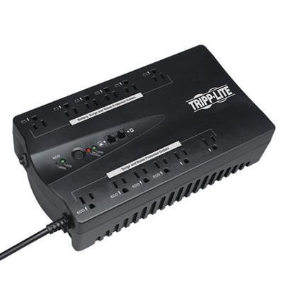 Tripp Lite's ECO750UPSTAA is compliant with the Federal Trade Agreements Act (TAA) for GSA Schedule purchases. This standby GREEN UPS offers complete protection from blackouts, brownouts and transient surges. Supports GREEN energy savings via built-in 'ECO' outlets that automatically power off unused computer accessories like printers or multi-media speakers when the computer is not in use. Full load efficiency rating of 99% also offers energy-savings and cooler operation by limiting UPS power consumption to less than 5 watts! Eco-friendly design meets strict RoHS environmental standards. Provides uninterrupted transition to battery-derived AC output during brownouts and power failures with enough runtime to save and shutdown connected equipment without data loss. Offers complete protection in an ultra-compact desktop or wall-mountable housing. Includes 6 battery supported outlets for computer, monitor and four vital system peripherals, plus 6 additional surge suppression-only outlets for accessories not requiring battery support. Four of the surge-only outlets are designated 'ECO' outlets that can be configured to automatically power-off when the computer enters standby mode or is shutdown. USB port enables UPS configuration options and unattended system shutdown without data loss in the case of extended power failure. PowerAlert software is available via free download from www.tripplite.com. USB cable included. Built-in single line RJ11 phone suppression protects modem, fax machine, cordless phone or other accessories with a dialup/DSL phone connection. Built-in audible alarm and front panel LEDs offer continuous status information regarding line and battery power operation. 750VA/450 watt power handling ability supports entry-level PC systems for up to 45 minutes during power fail conditions. 3 year warranty. $100,000 connected equipment insurance (USA, Puerto Rico, & Canada Only). Compliant with the Federal Trade Agreements Act (TAA) for GSA Schedule purchases ECO750UPSTAA standby GREEN UPS offers complete protection from blackouts, brownouts and transient surges Built-in 'ECO' outlets automatically power off unnecessary computer accessories like printers, scanners and speakers when computer is not in use Full load efficiency rating of 99% saves energy and heat output by limiting UPS power consumption to less than 5 watts with only 4 BTU/hr. of heat output Eco-friendly design meets strict RoHS (Restriction of Hazardous Substances) environmental standards. 750VA / 450 watt UPS provides battery-derived AC output during brownouts and power failures to support entry-level desktop computer with 15 inch LCD monitor up to 45 minutes Ultra compact UPS supports a variety of placement options for desktop or wallmount use Includes 6 UPS supported outlets for computer, monitor and four vital system peripherals requiring uninterrupted power Includes 6 Surge-only outlets for accessories not requiring battery support Four of the Surge-only outlets are designated 'ECO' outlets that can be configured to automatically power-off when the computer is not in use USB port enables UPS configuration options and unattended system shutdown without data loss in the case of extended power failure. PowerAlert UPS monitoring software is available for free download from www.tripplite.com Single line RJ11 phone suppression jacks protect modem, fax machine, cordless phone or other accessories from surges on dialup/DSL phone connections USB cable included Space-saving right angle input plug 3 year standard warranty with $100,000 connected equipment insurance (USA, Puerto Rico & Canada only) Package Includes ECO750UPSTAA TAA Compliant UPS System USB cables Instruction manual with warranty information BRAND : TRIPP LITE
