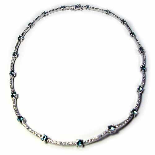 This simple yet elegant sterling silver necklace features vibrant aqua CZ stones stationed across pave-set sparkling cubic zirconia studded links. Necklace is plated with rhodium to prevent tarnish.Total CZ weight: 5.35ct.>