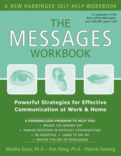 Book annotation not available for this title. Title: The Messages Workbook Author: Davis, Martha/ Paleg. Kim, Ph.D./ Fanning, Patrick Publisher: New Harbinger Pubns Inc Publication Date: 2004/11/01 Number of Pages: 232 Binding Type: PAPERBACK Library of Congress: oc2007105039 Additional Details \N BOOK TYPE : NF BRAND : Davis, Martha/ Paleg. Kim, Ph.D./ Fanning, Patrick DEWEY CLASSIFICATION : 153.6 LANGUAGE : ENGLISH NUMBER OF PAGES : 232 PUBLISH DATE : 2004/11/01 PUBLISHER IMPRINT CODE : NEHAR PUBLISHER NAME : NEW HARBINGER PUBNS INC RETURNS ACCEPTED? : YES