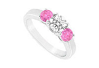 | Three Stone Pink Sapphire and Diamond Ring : 14K White Gold - 0.33 CT TGW |