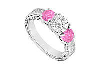 | Three Stone Pink Sapphire and Diamond Ring : 14K White Gold - 1.00 CT TGW |