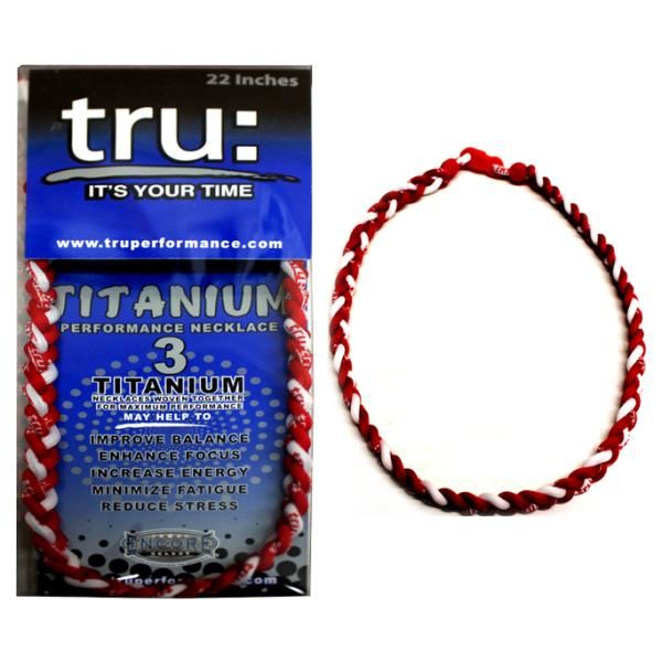 TRU Performance Titanium Necklaces - Red and White. Helps to improve balance, enhance focus, increase energy, minimize fatigue, and reduce stress. Assorted Sizes - 18 and 22 inches." Case Pack 12 Please note: If there is a color/size/type option, the option closest to the image will be shipped (Or you may receive a random color/size/type). Additional Details As we rotate stock, everything with an expiration date will have at least a 2 year shelf life (unless otherwise specified)null BRAND : DDI PRODUCT_CODE_TYPE : UPC