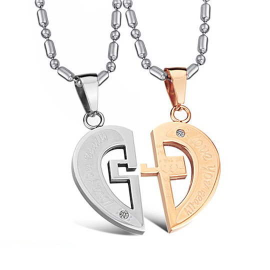 Understated yet distinctively dashing. This extraordinary pair of puzzle pendant necklaces features a masterfully crafted design. Product Content: 1x Titanium Steel Puzzle Heart Pieces Pair Couple Necklaces. Condition:New Location:Hong Kong Material:Titanium Steel Brand:CET Domain MPN:SZ17-N171 Dimensions:Pendant: Silver: LENGTH: 31mm WIDTH: 15mm, Rose Gold: LENGTH: 31mm WIDTH: 19mm Necklace: LENGTH: 55cm Warranty 30 Days BRAND : CET Domain