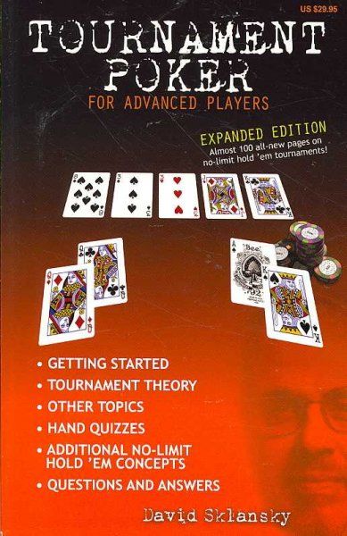Book annotation not available for this title. Title: Tournament Poker for Advanced Players Author: Sklansky, David Publisher: Two Plus Two Pub Publication Date: 2007/12/01 Number of Pages: 346 Binding Type: PAPERBACK Library of Congress: 2008279159 Additional Details \N BOOK TYPE : NF BRAND : Sklansky, David DEWEY CLASSIFICATION : 795.412 LANGUAGE : ENGLISH NUMBER OF PAGES : 346 PUBLISH DATE : 2007/12/01 RETURNS ACCEPTED? : YES