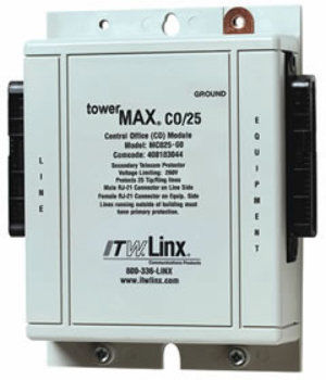 Towermax CO/25 Towermax CO/25 for up to 25 CO lines, RJ-21X. Protects 25 CO lines using efficient RJ-21X connectors. Male-in/ Femiale-out. The most compact CO/25 protection in the industry, featuring auto-resetting solid state sneak current protection. Use with Towermax KSU base unit. Clamping level 240 volts. " Sold Individually Please note: If there is a color/size/type option, the option closest to the image will be shipped (Or you may receive a random color/size/type). BRAND : WMU PRODUCT_CODE : 790237011206 PRODUCT_CODE_TYPE : UPC