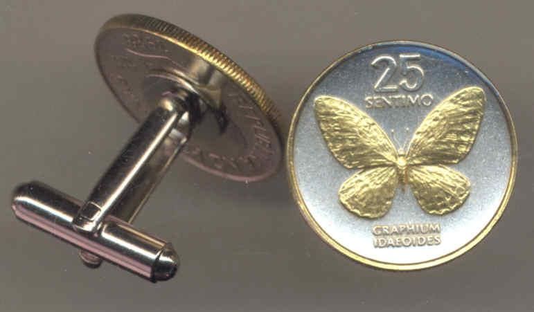Unique 2-Toned Gold on Silver Philippines Butterfly, Coin Cufflinks