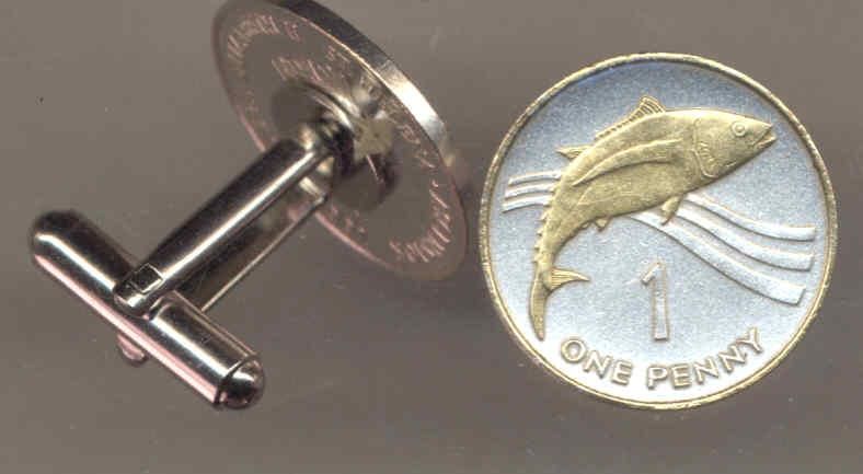 Unique 2-Toned Gold on Silver St. Helena Islands Tuna fish Coin Cufflinks