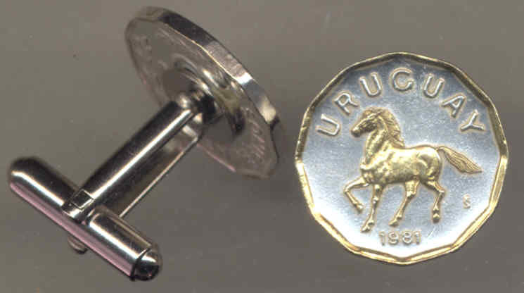 Unique 2-Toned Gold on Silver Uruguay Horse, Coin Cufflinks |