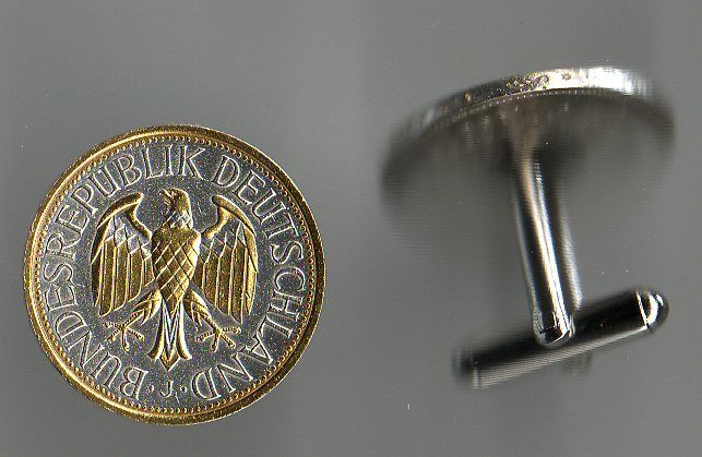Each one of these real 1 mark (U.S. quarter size) almost new, un-circulated coins from Germany is first layered in pure Bright Silver. Then the figures of each are highlighted and brought to life with rich pure 24K Gold & Pure Silver (this gold & Silver work is done by hand). This breathtaking and exclusive work turns these coin into stunning and true works of art. Each coin is hermetically sealed against wear in clear, hard acrylic coating. These coins are then made into unique pairs of cufflinks and placed in a nice jewelry box. Warranty 90 days BRAND : J&J Coin Jewelry