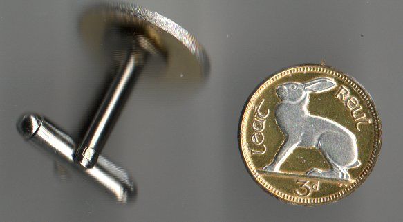 Each one of these real 3 pence (U.S. dime size) new, un-circulated coins from Ireland is first layered in pure 24k gold. Then the figures of each are highlighted and brought to life with bright pure silver (this silver work is done by hand). This breathtaking and exclusive work turns these coin into stunning and true works of art. Each coin is hermetically sealed against wear in clear, hard acrylic coating. These coins are then made into unique pairs of cufflinks and placed in a nice jewelry box. Warranty 90 days BRAND : J&J Coin Jewelry