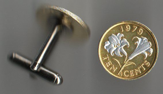 Each one of these real 10 cent (U.S. dime size) new, un-circulated coins from Bermuda is first layered in pure 24k gold. Then the figures of each are highlighted and brought to life with rich pure Silver and 24k Gold (this gold & Silver work is done by hand). This breathtaking and exclusive work turns these coin into stunning and true works of art. Each coin is hermetically sealed against wear in clear, hard acrylic coating. These coins are then made into unique pairs of cufflinks and placed in a nice jewelry box. Warranty 90 days BRAND : J&J Coin Jewelry
