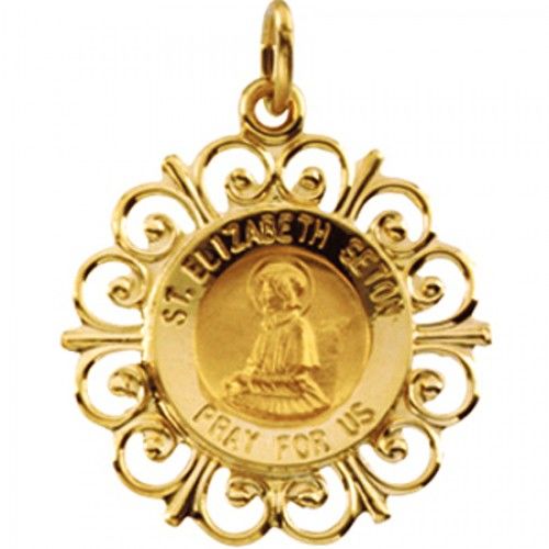 This Holy Mother Seton Pendant Features Clean Lines and Striking Design. This Round Mother Seton Pendant Medal Is Made of Shiny 14k Yellow Gold. It Measures 22mm From End to End and 19mm Wide. Wearing This Mother Seton Pendant in 14k Yellow Gold Is the Perfect Way to Commemorate Your Favorite Religious Icon in Style. Processing Time: 1 days.