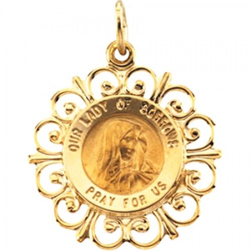 This Prayerful Our Lady of Sorrows Pendant Features Clean Lines and Striking Design. This Round Our Lady of Sorrows Pendant Medal Is Made of Fine 14k Yellow Gold. It Measures 22mm From End to End and 19mm Wide. Wearing This Our Lady of Sorrows Pendant in 14k Yellow Gold Is the Perfect Way to Commemorate Your Favorite Religious Icon in Style. Processing Time: 1 days.