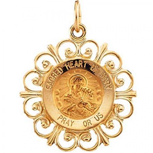 This Devout Sacred Heart of Mary Pendant Features Clean Lines and Striking Design. This Round Sacred Heart of Mary Pendant Medal Is Made of Quality 14k Yellow Gold. It Measures 22mm From End to End and 19mm Wide. Wearing This Sacred Heart of Mary Pendant in 14k Yellow Gold Is the Perfect Way to Commemorate Your Favorite Religious Icon in Style. Processing Time: 1 days.