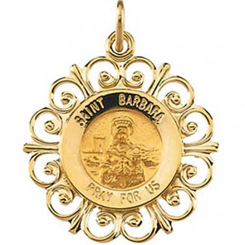 This Religious St. Barbara Pendant Features Clean Lines and Striking Design. This Round St. Barbara Pendant Medal Is Made of Shiny 14k Yellow Gold. It Measures 22mm From End to End and 19mm Wide. Wearing This St. Barbara Pendant in 14k Yellow Gold Is the Perfect Way to Commemorate Your Favorite Religious Icon in Style. Processing Time: 1 days.