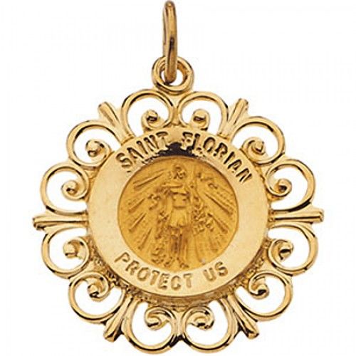 This Humble St. Florian Pendant Features Clean Lines and Striking Design. This Round St. Florian Pendant Medal Is Made of Fine 14k Yellow Gold. It Measures 22mm From End to End and 19mm Wide. Wearing This St. Florian Pendant in 14k Yellow Gold Is the Perfect Way to Commemorate Your Favorite Religious Icon in Style. Processing Time: 1 days.