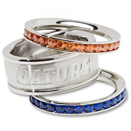 Let Everyone Know You Hold a Special Place in Your Heart For the Gators with This University of Florida Cubic Zirconia Stacked Ring Set. This Gators Ring Set Is Officially Licensed By the Ncaa and Features Orange and Blue Team Colored Cz Stones. Whether YouRe Watching From Home or Live At the Field, Cheer On the Gators in Style with This University of Florida Stacked Ring Set in Stainless Steel. Processing Time: 10 days. BRAND : NCAA OFFICIALLY LICENSED GEM TYPE : CUBIC ZIRCONIA GEM TYPE - 2 : CUBIC ZIRCONIA METAL STAMP : 11.4 METAL TYPE : STAINLESS STEEL METAL UNIT OF MEASURE : GRAMS SIZE : 6,7,8 STONE CLARITY : I1 STONE CLARITY - 2 : I1 STONE COLOR : ORANGE STONE COLOR - 2 : BLUE STONE COLOR - 3 : ORANGE STONE CUT : VERY GOOD CUT STONE CUT - 2 : VERY GOOD CUT STONE SHAPE : ROUND SHAPE STONE SHAPE - 2 : ROUND SHAPE STONE WEIGHT : 1.00 STONE WEIGHT - 2 : 1.00 TOTAL GEM WEIGHT : 2.00 TOTAL METAL WEIGHT : NO METAL STAMP UNIT OF MEASURE (DIMENSIONS) : MM