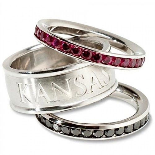 Showcase Your Jayhawks Allegiance with This University of Kansas Jayhawks Cubic Zirconia Stacked Ring Set. This Jayhawks Cz Ring Set Features Style and Quality Rolled Into One Attractive Accessory with Red and Black Cubic Zirconia Team Colored Stones Accenting to the Stainless Steel Bands. It Is Officially Licensed By the Ncaa and Comes in an Official Window Gift Box - Ready to Give. Support Your Favorite Ncaa in Style with This University of Kansas Jayhawks Cubic Zirconia Stacked Ring Set. Processing Time: 10 days. BRAND : NCAA OFFICIALLY LICENSED GEM TYPE : CUBIC ZIRCONIA GEM TYPE - 2 : CUBIC ZIRCONIA METAL STAMP : 11.4 METAL TYPE : STAINLESS STEEL METAL UNIT OF MEASURE : GRAMS SIZE : 6,7,8 STONE CLARITY : I1 STONE CLARITY - 2 : I1 STONE COLOR : RED STONE COLOR - 2 : BLACK STONE COLOR - 3 : RED STONE CUT : VERY GOOD CUT STONE CUT - 2 : VERY GOOD CUT STONE SHAPE : ROUND SHAPE STONE SHAPE - 2 : ROUND SHAPE STONE WEIGHT : 1.00 STONE WEIGHT - 2 : 1.00 TOTAL GEM WEIGHT : 2.00 TOTAL METAL WEIGHT : NO METAL STAMP UNIT OF MEASURE (DIMENSIONS) : MM