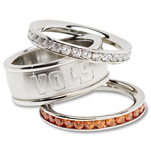 Showcase Your Vols Allegiance with This University of Tennessee Vols Cubic Zirconia Stacked Ring Set. This Vols Cz Ring Set Features Style and Quality Rolled Into One Outstanding Accessory with White and Orange Cubic Zirconia Team Colored Stones Accenting to the Stainless Steel Bands. It Is Officially Licensed By the Ncaa and Comes in an Official Window Gift Box - Ready to Give. Support Your Favorite Ncaa in Style with This University of Tennessee Vols Cubic Zirconia Stacked Ring Set. Processing Time: 10 days. BRAND : NCAA OFFICIALLY LICENSED GEM TYPE : CUBIC ZIRCONIA GEM TYPE - 2 : CUBIC ZIRCONIA METAL STAMP : 11.4 METAL TYPE : STAINLESS STEEL METAL UNIT OF MEASURE : GRAMS SIZE : 6,7,8 STONE CLARITY : I1 STONE CLARITY - 2 : I1 STONE COLOR : WHITE STONE COLOR - 2 : ORANGE STONE COLOR - 3 : WHITE STONE CUT : VERY GOOD CUT STONE CUT - 2 : VERY GOOD CUT STONE SHAPE : ROUND SHAPE STONE SHAPE - 2 : ROUND SHAPE STONE WEIGHT : 1.00 STONE WEIGHT - 2 : 1.00 TOTAL GEM WEIGHT : 2.00 TOTAL METAL WEIGHT : NO METAL STAMP UNIT OF MEASURE (DIMENSIONS) : MM