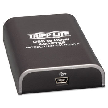 Warranty Manufacturer's limited one-year warranty. ADAPTER/CHARGER TYPE : HDMI ADAPTER BRAND : TRIPP LITE COLORS : BLACK COLORS : BLACK COMPLIANCE STANDARDS : ROHS CONNECTOR/PORT/INTERFACE : USB MINI 5 PIN; HDMI FEMALE CONNECTS DEVICES (FROM/TO) : ADDITIONAL MONITOR OR HDTV TO COMPUTER/LAPTOP USB 2.0 PORT ELECTRONIC/MECHANICAL : ELECTRONIC FOR DEVICE TYPE : USB COMPUTER/HDTV FOR USE WITH : MONITORS; COMPUTERS GLOBAL PRODUCT TYPE : ADAPTERS/CHARGERS-HDMI ADAPTER GREEN INDEX : N LENGTH : 2 1/4" OPERATING SYSTEM COMPATIBILITY : MAC OS X 10.4 AND LATER; WINDOWS 2000 AND LATER POST-CONSUMER RECYCLED CONTENT PERCENT : 0 % POST-CONSUMER RECYCLED CONTENT PERCENT : 0 % POWER SOURCE(S) : USB POWERED PRE-CONSUMER RECYCLED CONTENT PERCENT : 0 % PRE-CONSUMER RECYCLED CONTENT PERCENT : 0 % RECYCLABLE : N TOTAL RECYCLED CONTENT PERCENT : 0% UNIT OF MEASURE : EA