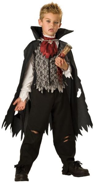Tattered cape, layered vest/shirt combo, ascot, pants and realistic vinyl stake attached and sticks out of costume. Child LG 8-10." Sold Individually Please note: If there is a color/size/type option, the option closest to the image will be shipped (Or you may receive a random color/size/type). BRAND : WMU PRODUCT_CODE : 843269013226 PRODUCT_CODE_TYPE : UPC
