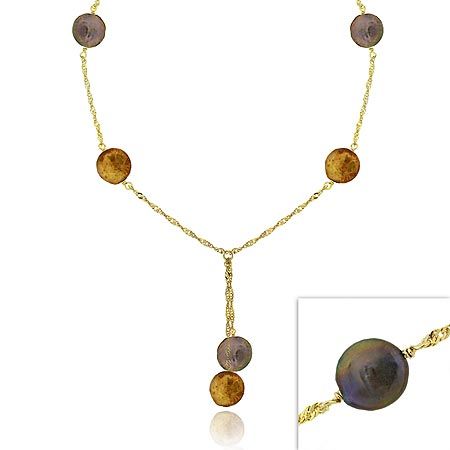 18K Gold over Sterling Silver Freshwater Cultured Peacock & Champagne Coin Pearl Lariat Necklace |