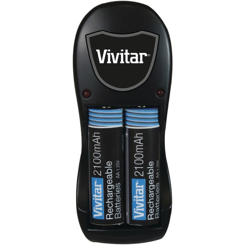 VIVITAR VIV-BC-162 Compact Travel Charger Fits AAA & AA batteries; Flip-out AC plug; Includes 2 AA, high-capacity NiMH batteries