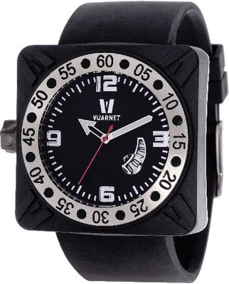 Vuarnet Watches was developed in the concern of the respect for the values conveyed by the brand Vuarnet for 50 years by integrating what makes its strength; technicality; use of innovative materials and aesthetic boldness. In 1990; Vuarnet entered the world of watch making; launching a range of watches which innovated in terms of design and style; including the famous Vuarnet Cup; with its removable measuring instruments. Item Shape: Square Display Window Material Type: Mineral Display Type: Analog Case Material: Stainless Steel Case Color: Black Dial Color: Black Band Material: Polyurethane Band Color: Black Clasp: Buckle Dial Color: Black Bezel Function: Stationary Bezel Color: Black Special Features: Date Display; Tac ;m msafgioj Band Color: Black Rubber; Band Width: 28mm near case; 28mm near clasp/buckle; Bezel Color: Silver; Case: Black + Square-shaped; Case Finish: Flat + Polyurethane; Case Thickness: 12mm to 11mm; Case Width: 46mm; 51mm with crown; Clasp / Buckle: Strap Buckle; Dial: Black + analog; Hand Color: Silver; Movement: Japanese + quartz; Time Zones: Single; Water Resistance: 5 atm; Other Features: Magnified Date Display BRAND : VUARNET