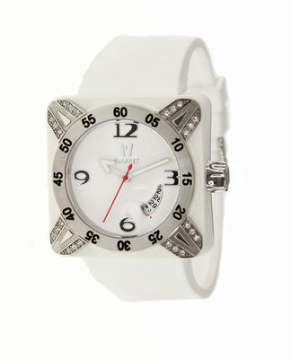 Vuarnet Watches was developed in the concern of the respect for the values conveyed by the brand Vuarnet for 50 years by integrating what makes its strength; technicality; use of innovative materials and aesthetic boldness. In 1990; Vuarnet entered the world of watch making; launching a range of watches which innovated in terms of design and style; including the famous Vuarnet Cup; with its removable measuring instruments. Item Shape: Square Display Window Material Type: Mineral Display Type: Analog Case Material: Stainless Steel Case Color: White Dial Color: White Band Material: Polyurethane Band Color: White Clasp: Buckle Dial Color: White Bezel Function: Stationary Bezel Color: Silver Special Features: Date Display; Tac ;m msafgioj Band Color: White Rubber; Band Width: 24mm near case; 21mm near clasp/buckle; Bezel Color: Silver; Case: White + Square-shaped; Case Finish: Flat + Polyurethane; Case Thickness: 11mm to 10mm; Case Width: 40mm; 45mm with crown; Clasp / Buckle: Strap Buckle; Dial: White + analog; Hand Color: Silver; Movement: Japanese + quartz; Time Zones: Single; Water Resistance: 5 atm; Other Features: 24 Swarovski crystals around bezel; Magnified Date Display BRAND : VUARNET