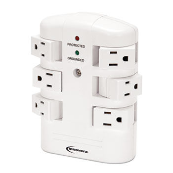 Warranty Manufacturer's limited one-year warranty. BRAND : INNOVERA COLORS : WHITE COLORS : WHITE COMPLIANCE STANDARDS : UL/CUL LISTED CONNECTED EQUIPMENT GUARANTEE/WARRANTY : $40,000 LIMITED DIAGNOSTICS/ALARM/STATUS LIGHT : DIAGNOSTIC LED DISCLAIMER STATEMENT : MAXIMUM LOAD ON ALL OUTLETS SHOULD NOT EXCEED 15 AMPS GLOBAL PRODUCT TYPE : SURGE PROTECTORS GREEN INDEX : N HOUSING MATERIAL : PLASTIC JOULES OF SURGE PROTECTION : 2160 J NUMBER OF OUTLETS : 6 POST-CONSUMER RECYCLED CONTENT PERCENT : 0 % POST-CONSUMER RECYCLED CONTENT PERCENT : 0 % PRE-CONSUMER RECYCLED CONTENT PERCENT : 0 % PRE-CONSUMER RECYCLED CONTENT PERCENT : 0 % PROTECTION TYPE : POWER RECYCLABLE : N TOTAL RECYCLED CONTENT PERCENT : 0% UNIT OF MEASURE : EA