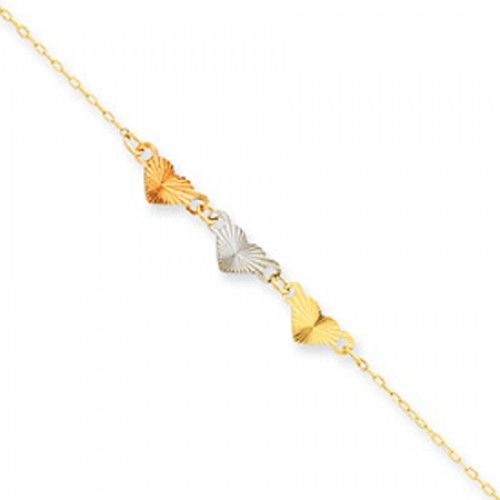 Women'S Heart Style Anklet in 14kt Rose, White and Yellow Gold - Tri-Tone