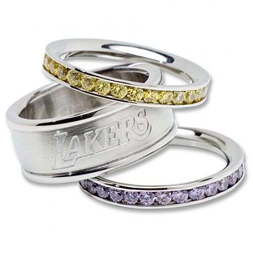 Showcase Your Lakers Allegiance with This Los Angeles Lakers Cubic Zirconia Stacked Ring Set. This Lakers Cz Ring Set Features Style and Quality Rolled Into One Flattering Accessory with Yellow and Violet Cubic Zirconia Team Colored Stones Accenting to the Stainless Steel Bands. It Is Officially Licensed By the Nba and Comes in an Official Window Gift Box - Ready to Give. Support Your Favorite Nba in Style with This Los Angeles Lakers Cubic Zirconia Stacked Ring Set. Processing Time: 10 days. BRAND : NBA OFFICIALLY LICENSED GEM TYPE : CUBIC ZIRCONIA GEM TYPE - 2 : CUBIC ZIRCONIA METAL STAMP : 11.4 METAL TYPE : STAINLESS STEEL METAL UNIT OF MEASURE : GRAMS SIZE : 6,7,8 STONE CLARITY : I1 STONE CLARITY - 2 : I1 STONE COLOR : YELLOW STONE COLOR - 2 : VIOLET STONE COLOR - 3 : YELLOW STONE CUT : VERY GOOD CUT STONE CUT - 2 : VERY GOOD CUT STONE SHAPE : ROUND SHAPE STONE SHAPE - 2 : ROUND SHAPE STONE WEIGHT : 1.00 STONE WEIGHT - 2 : 1.00 TOTAL GEM WEIGHT : 2.00 TOTAL METAL WEIGHT : NO METAL STAMP UNIT OF MEASURE (DIMENSIONS) : MM