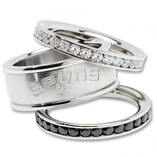 Showcase Your Spurs Allegiance with This San Antonio Spurs Cubic Zirconia Stacked Ring Set. This Spurs Cz Ring Set Features Style and Quality Rolled Into One Fascinating Accessory with White and Black Cubic Zirconia Team Colored Stones Accenting to the Stainless Steel Bands. It Is Officially Licensed By the Nba and Comes in an Official Window Gift Box - Ready to Give. Support Your Favorite Nba in Style with This San Antonio Spurs Cubic Zirconia Stacked Ring Set. Processing Time: 10 days. BRAND : NBA OFFICIALLY LICENSED GEM TYPE : CUBIC ZIRCONIA GEM TYPE - 2 : CUBIC ZIRCONIA METAL STAMP : 11.4 METAL TYPE : STAINLESS STEEL METAL UNIT OF MEASURE : GRAMS SIZE : 6,7,8 STONE CLARITY : I1 STONE CLARITY - 2 : I1 STONE COLOR : WHITE STONE COLOR - 2 : BLACK STONE COLOR - 3 : WHITE STONE CUT : VERY GOOD CUT STONE CUT - 2 : VERY GOOD CUT STONE SHAPE : ROUND SHAPE STONE SHAPE - 2 : ROUND SHAPE STONE WEIGHT : 1.00 STONE WEIGHT - 2 : 1.00 TOTAL GEM WEIGHT : 2.00 TOTAL METAL WEIGHT : NO METAL STAMP UNIT OF MEASURE (DIMENSIONS) : MM