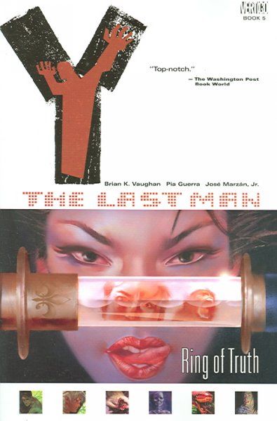 When a plague of unknown origin kills every mammal with a Y chromosome, Yorick Brown discovers that he is the only male left and embarks on a transcontinental journey to discover why. Additional Details \N BOOK TYPE : FI BRAND : Vaughan, Brian K./ Guerra, Pia (ILT)/ Marzan, Jose (ILT) DEWEY CLASSIFICATION : 741.5/973 LANGUAGE : ENGLISH NUMBER OF PAGES : 188 PUBLISH DATE : 2005/08/01 PUBLISHER IMPRINT CODE : VERTG PUBLISHER NAME : DC COMICS RETURNS ACCEPTED? : YES
